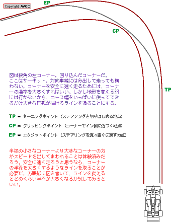 速く走ると言ってもクルマの性能以上には速く走れない。ならばクルマの性能を最大限に(つまり限界まで)引き出して走ろうというのがアウトインアウトの思想だ。単にアウトから入ってインについてアウトにはらめばアウトインアウトは完成、と思っていると大間違い。なぜアウトインアウトなのか。理由と目的をしっかり把握しなければ、それこそ理論で終わってしまう。