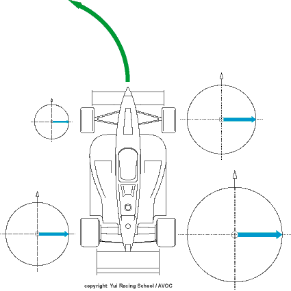 | クルマがコーナリングを開始するとクルマを外に押しやる遠心力が働く。もしタイヤがグリップしないものだったら、たちどころにクルマはコーナーの外に飛び出してしまう。それが限界域でもかろうじてコースにとどまり運転手が希望するラインを通れるのはタイヤがグリップしているからに他ならない。